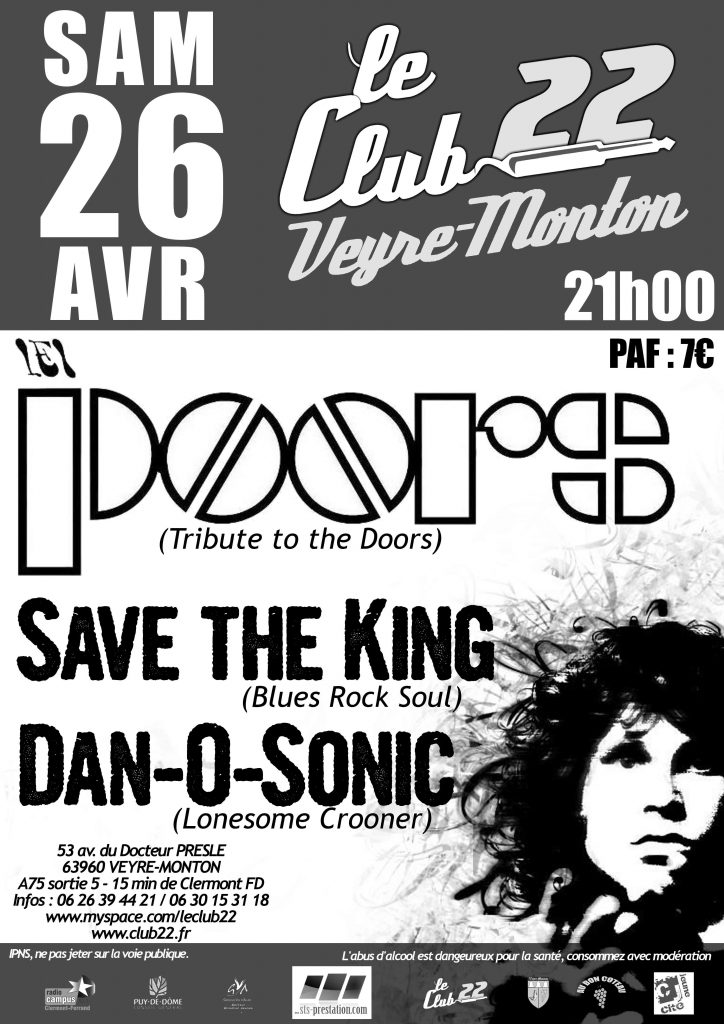 On ne présente pas les Doors, groupe mythique au chanteur hors norme des années 60-70. Comme Jim leur manquait, 5 potes ont lancé Les Poors et ça le fait grave ! Le but n’est pas d’être à l’identique (même si c’est vraiment pas loin) mais de retranscrire live et de se rapprocher de ce que furent les Doors. C’est beau, ça file droit dans les tripes et c’est remarquablement exécuté ! Venez donc rencontrer ce que vous n’avez jamais pu voir ou revivre l’expérience !